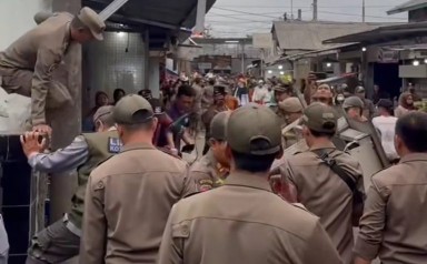 DEPOK, SGI-NEWS|– Puluhan petugas gabungan dari Satuan Polisi Pamong Praja (Satpol PP) Kota Depok bersama unsur TNI, Polri, Dinas Perhubungan, dan PT KAI menertibkan bangunan liar di sekitar Stasiun Depok, Kecamatan Pancoran Mas, Rabu (12/11/2025).