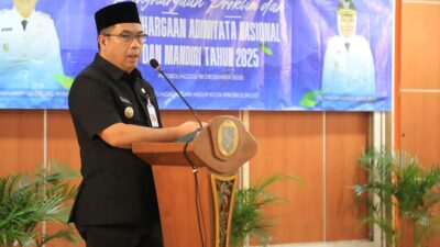 Pemerintah Kota Probolinggo melalui Dinas Lingkungan Hidup (DLH) menyerahkan Penghargaan Trofi Proklim (Program Kampung Iklim) dan Penghargaan Adiwiyata Nasional serta Adiwiyata Mandiri Tahun 2025 di Puri Manggala Bhakti, Kamis (18/12/2025).
