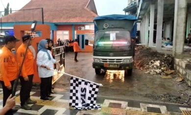 Nurul Azizah tiba di lokasi pemberangkatan di kantor BPBD Bojonegoro pada pukul 16.40 WIB, diiringi gerimis yang mengguyur Wilayah Kota Bojonegoro itu.