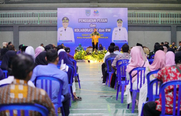 Ribuan ketua RT dan RW se-Kota Probolinggo berkumpul di GOR Mastrip Kedopok, Jumat (27/2), mengikuti kegiatan Penguatan Peran dan Kolaborasi Ketua RT dan Ketua RW dalam Mewujudkan Kota Probolinggo Bersolek. Kegiatan ini melibatkan Wali Kota Probolinggo dr. Aminuddin bersama Wakil Wali Kota Ina Dwi Lestari, Pj Sekda Rey Suwigtyo, Ketua TP PKK Kota dr Evariani serta kepala perangkat daerah hingga camat dan lurah.